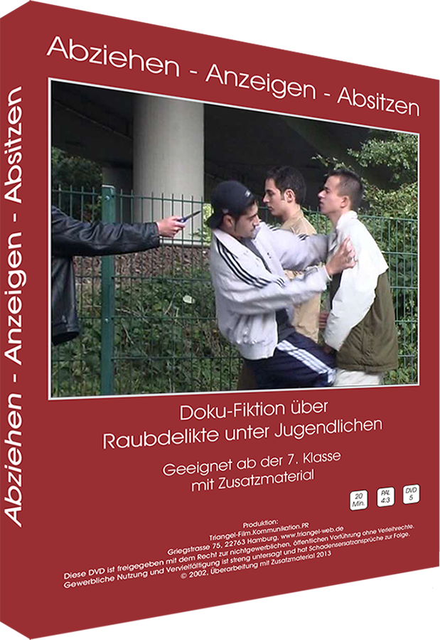 schutzes für den Kreis Pinneberg (Holstein) ergab, dass 4.000 von 18.000 Schüler/innen innerhalb eines Jahres Opfer von Raubdelikten wurden. Es gab im selben Zeitraum jedoch nur 200 Anzeigen. Die Angst vor Repressalien der Täter ist weiterhin allgegenwärtig. Der Film „Abziehen-Anzeigen-Absitzen“ soll betroffene Jugendliche darin bestärken, den Mut aufzubringen, Raubdelikte polizeilich anzuzeigen.